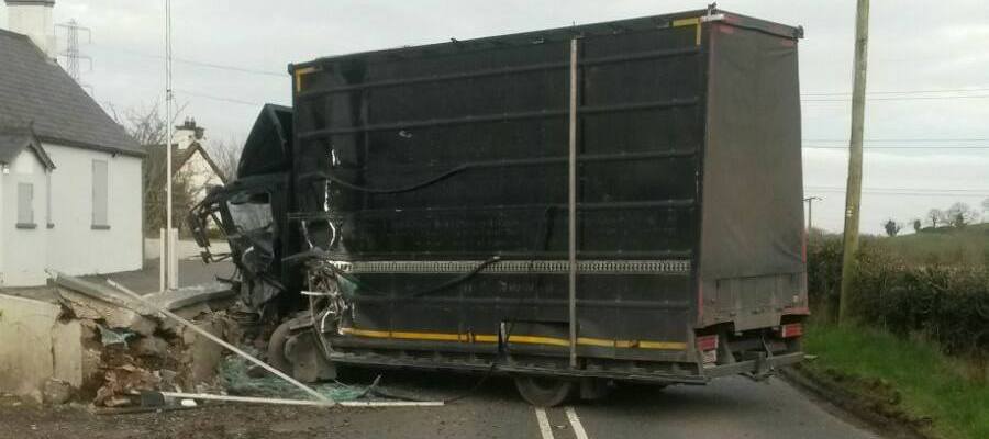 Police said “Following this one vehicle RTC, the Ballynahinch Road out of Dromore is closed at Ballyvicknakelly Orange Hall. The road may be closed for a while until this lorry is recovered. ”